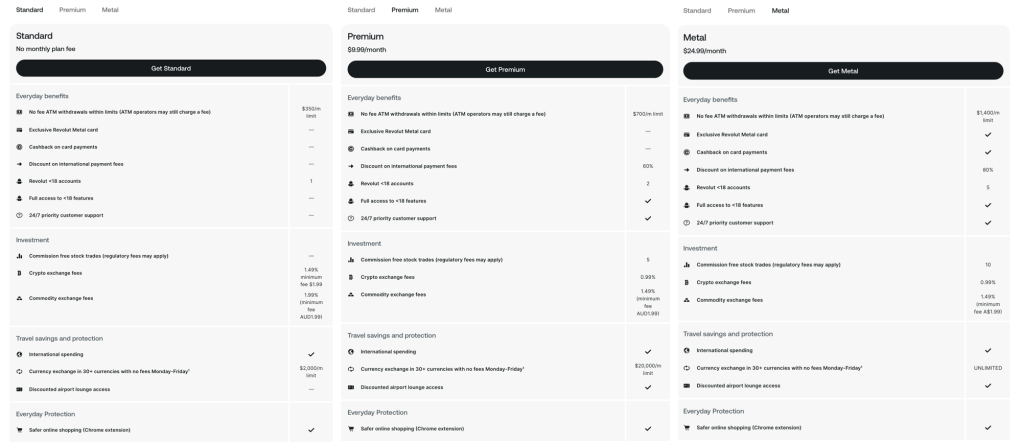 - Premium perks like partner programs and discounted airport lounge access (Premium Plan) and cashback (Metal Plan)